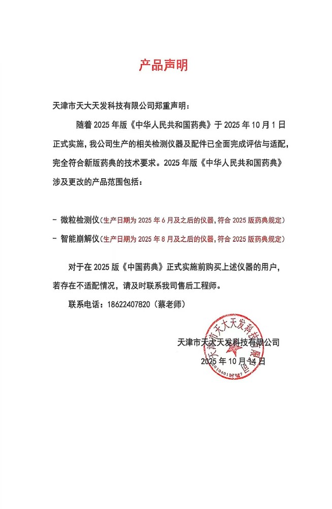 | 尊敬的各界朋友們: 歡迎您進入天津市天大天發(fā)科技有限公司的網(wǎng)站進行瀏覽,首先感謝各界朋友多年來對天大天發(fā)藥品檢測儀器和分析儀器的關(guān)心與支持! 天津市天大天發(fā)科技有限公司是通過ISO9001質(zhì)量管理體系認證、ISO14001環(huán)境管理體系的認證的高新技術(shù)企業(yè),是專業(yè)的藥檢儀器和分析儀器的制造廠商。 我們的產(chǎn)品包括藥品溶出儀系列、微粒檢測儀系列、內(nèi)毒素檢查儀系列等40余種產(chǎn)品,主要產(chǎn)品覆蓋了全國所有省區(qū),部分產(chǎn)品已進入海外市場。公司在藥檢領域樹立了良好的品牌形象,贏得了廣大用戶的贊譽。 公司將更好地適應瞬息萬變的市場,增強企業(yè)的核心競爭力。抓住全球經(jīng)濟飛速發(fā)展的歷史性機遇,以創(chuàng)新精神進行新的創(chuàng)業(yè)。以高起點、高速度、高效率創(chuàng)造出中國藥品檢測儀器和分析儀器領域中的品牌形象,立足中國,走向國際。 我們熱切希望您成為天大天發(fā)科技有限公司的合作伙伴! |